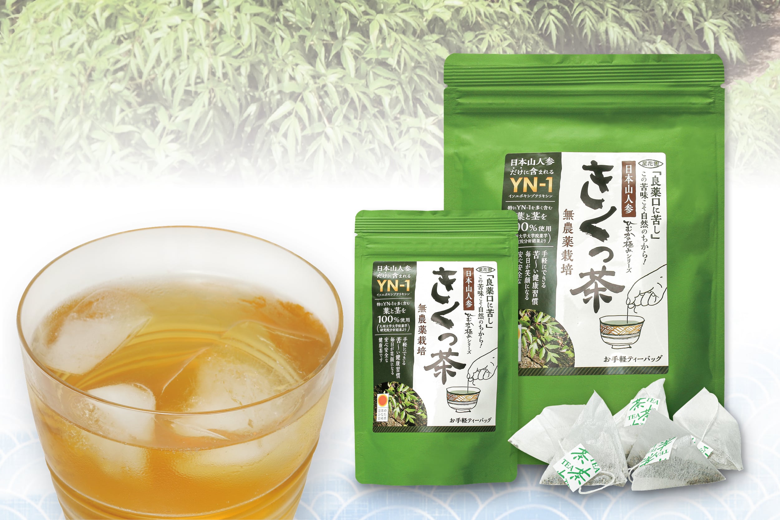 だから、日本山人参「きくっ茶」は、体に効くっ茶!